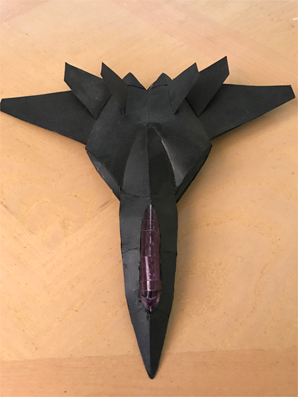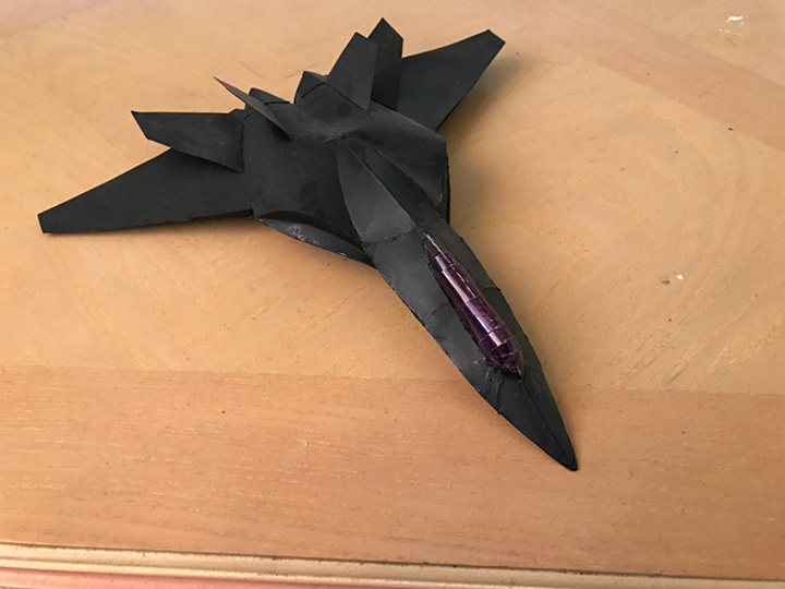This piece was made with paper and acetate, a magnet is responsible for the elevation.